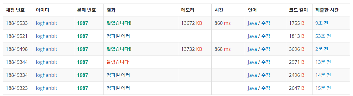 | [백준] 1261번 자바 알고스팟 (0) | 2020.05.02 |