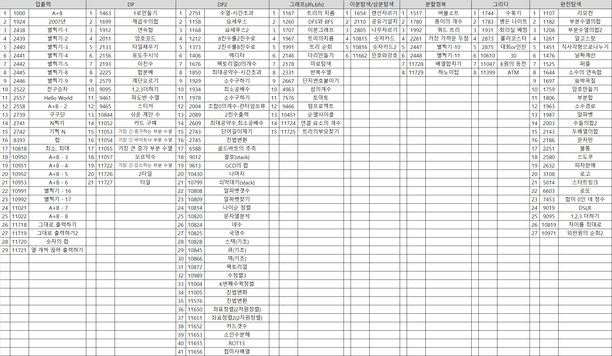 내가 백준님과 참고한 블로그에서도 제시한 공부방법은 하나의 문제는 2시간을 넘기지 않으며 이해가 되지 않으면 다른 블로거들의 코드를 보며 이해하는 것이다. 그래서 그 원칙을 최대한 지키려고 했고, 기초적인 문제와 반복되는 유형들은 따로 기록하여 개념을 정리해우고, 비슷한 문제가 나왔을때 응용해 보며 공부하였다.