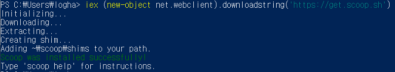 iex (new-object net.webclient).downloadstring('https://get.scoop.sh')