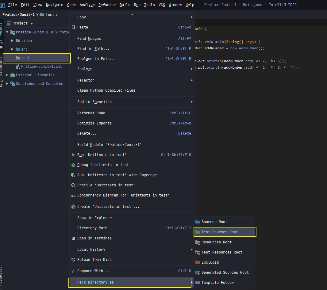 IntelliJ에서 간단한 junit 테스트 방법을 구현해 봅시다.