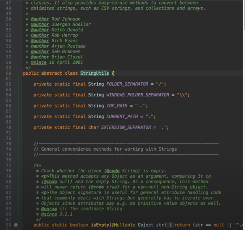 하지만 spring util을 살펴보면 굳이 private으로 적용하는 방법으로 구현하진 않았다.