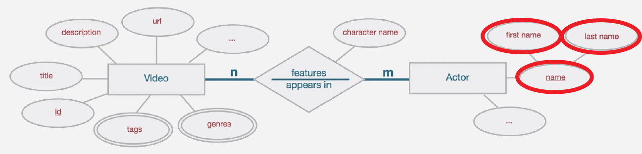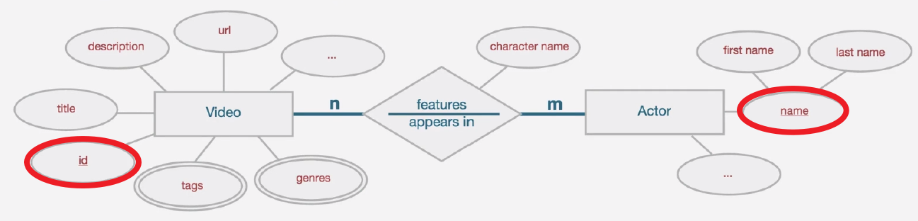 - ex ) Video : id, Actor : name