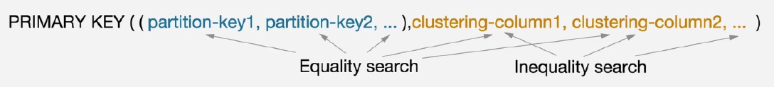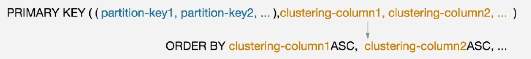 - 클러스터링 컬럼은 주요키에서 파티션키 컬럼을 팔로우 한다.