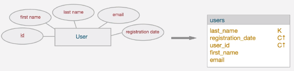 - 순서 속성은 클러스터링 컬럼에 매칭된다.
