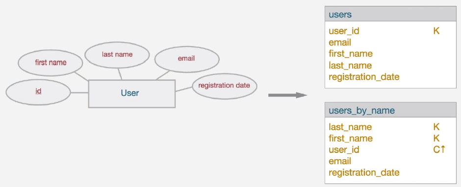 - 개념적 데이터 모델과 각 쿼리로부터 테이블 스키마 생성