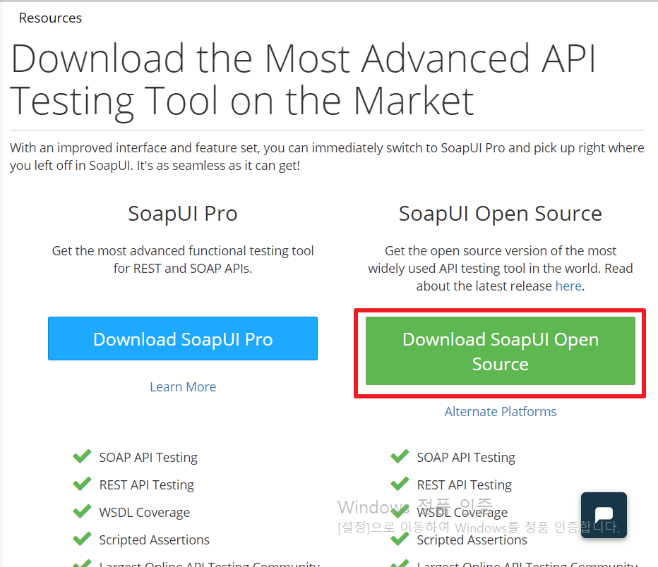 1) SOAP UI 홈페이지에서 들어가 SOAP UI Open Source 를 다운로드.