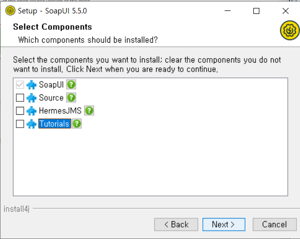 3) Select Components에서 Test에 필요한 Soap UI를 제외한 나머지 리스트는 선택 해제