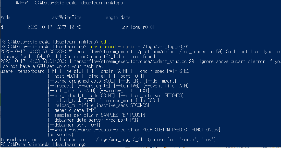 tensorboard 실행시 cudart64_101.dll 가 없다는 에러가 발생하였다.