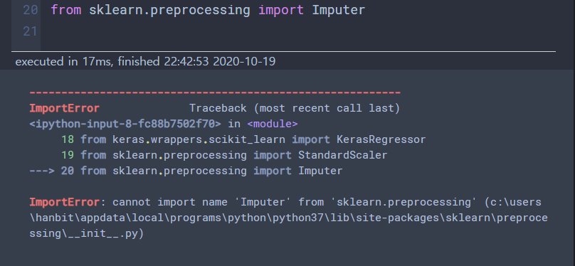 sklearn.preprocessing에서 Imputer 를 불러올때, 아래와 같은 오류가 발생했다.