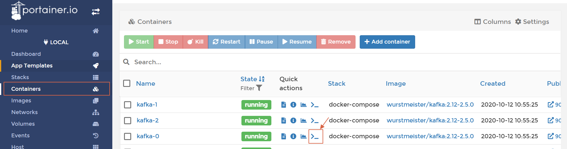 이럴때 portainer tool을 사용하여 cmd창을 실행하면 쉽게 명령어를 실행할 수 있다.