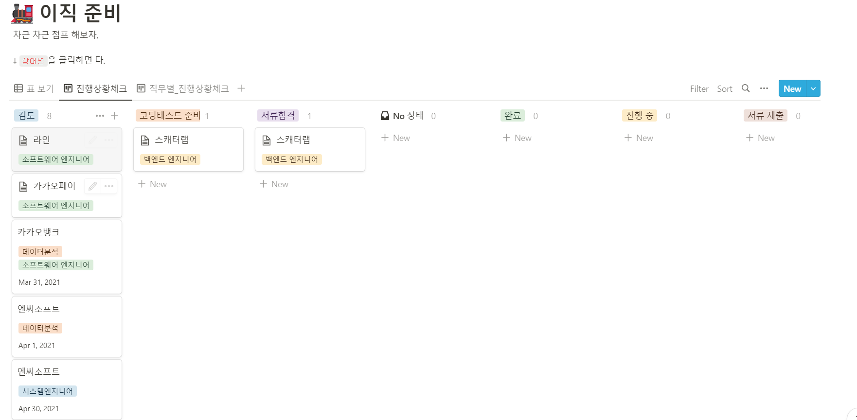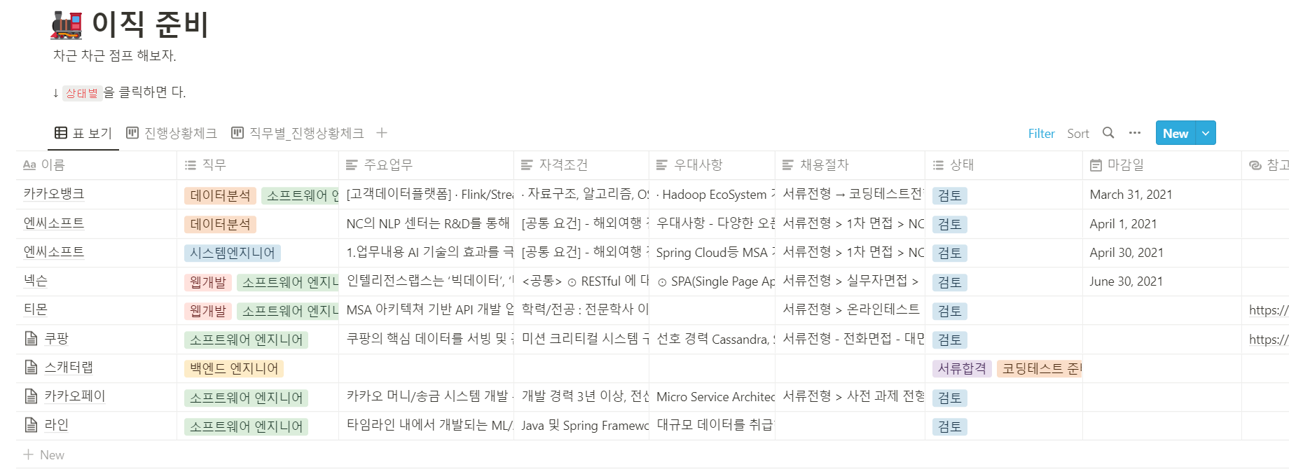 이번 글에서는 이직 준비했을때 사용했었던 notion 포맷을 공유하려고 해요.