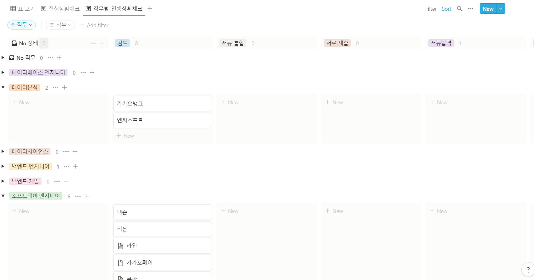 처음에는 엑셀로 정리하다가 자기소개서 내용도 같이 정리하고 싶어서 notion으로 옮기게 되었어요.