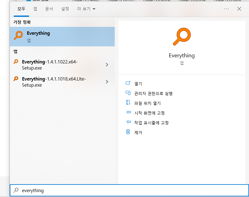 다운으로드 하고 실행하거나 시작에서 everything이라고 검색하면 파일 찾기를 바로 할 수 있다.