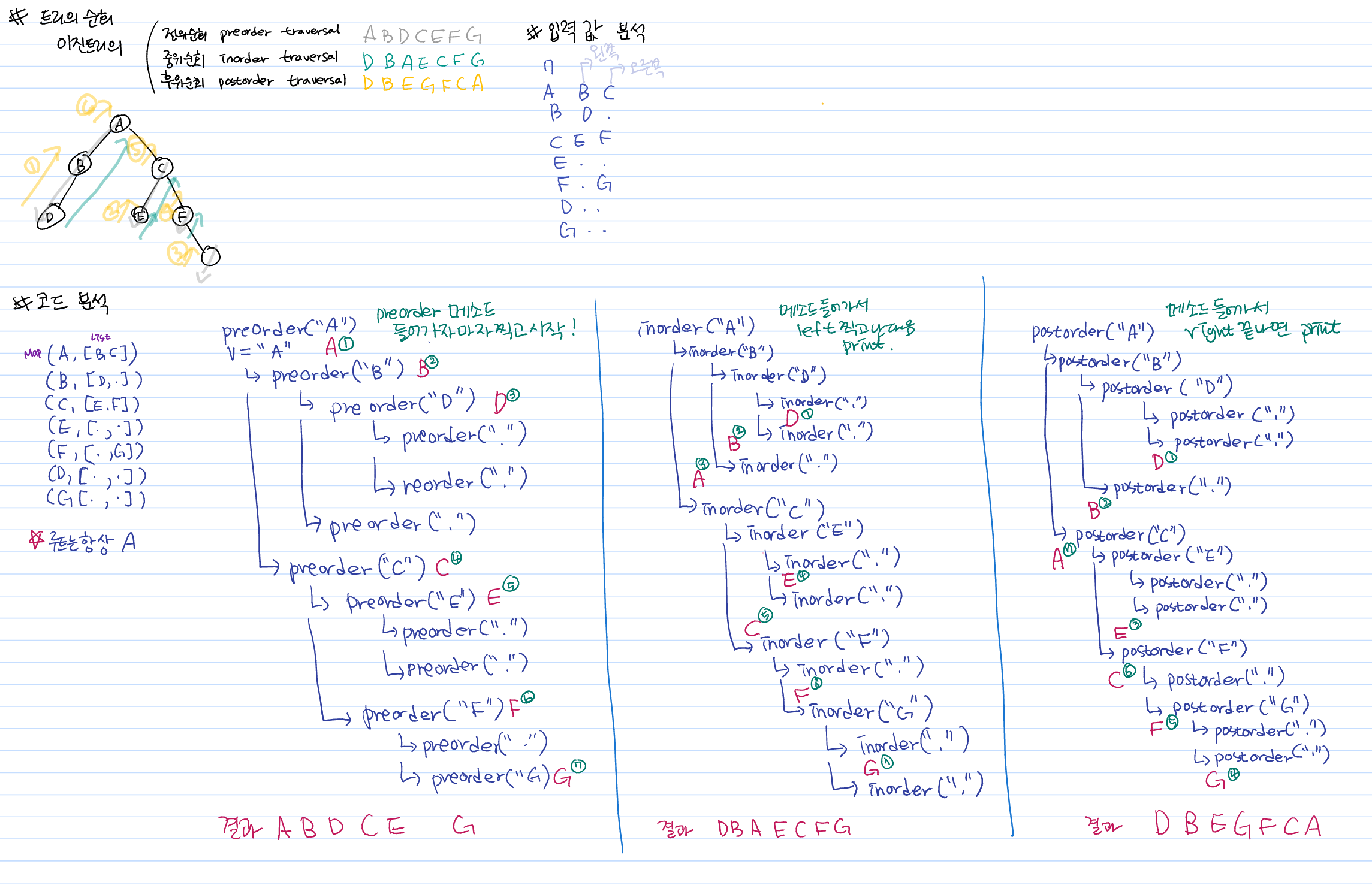 postorder("A");
