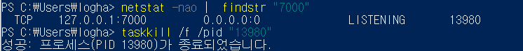 taskkill /f /pid "PID 번호"